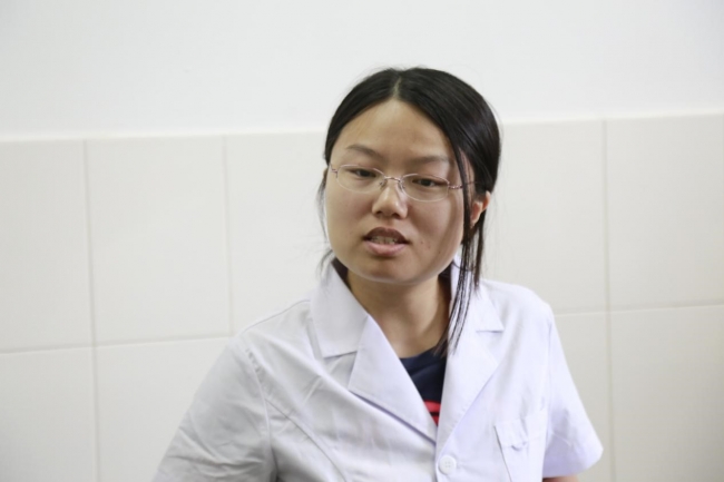 站内老师演示人工测量雨量的方法